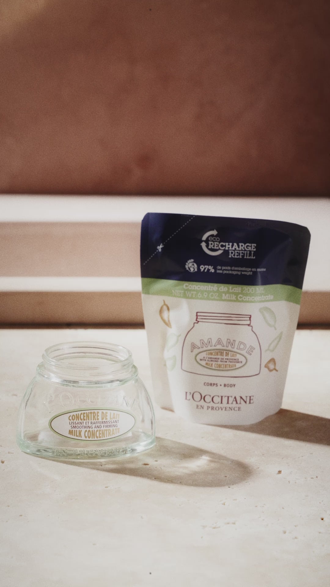 Refill till vår Almond Milk Concentrate är en silkeslen mirakelkräm som smälter in i huden och ger intensiv näring tack vare sin höga koncentration av mandelmjölk och mandelolja från Provence. Den återfuktar, mjukgör och hjälper till att strama upp huden, samtidigt som den förbättrar hudens fasthet och elasticitet. Med 95% naturliga ingredienser stimulerar den cellförnyelsen och gör huden synligt slätare – dag efter dag.